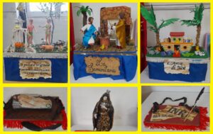 In esposizione i principali “misteri a spalla” della tradizione,  dal bacio di Giuda al canto del gallo, fino a Pilato e alla Via Crucis con la Veronica,  insieme ai simboli della Passione (chiodi e martello, dadi, corona di spine) e ai piccoli “misteri”.  Al centro dell’allestimento spicca la statua del Cristo morto di Carmine Lantriceni, affiancata dalla Madonna Addolorata, mentre bandiera, tromba e tamburo richiamano l’apertura del corteo processionale del Venerdì Santo.