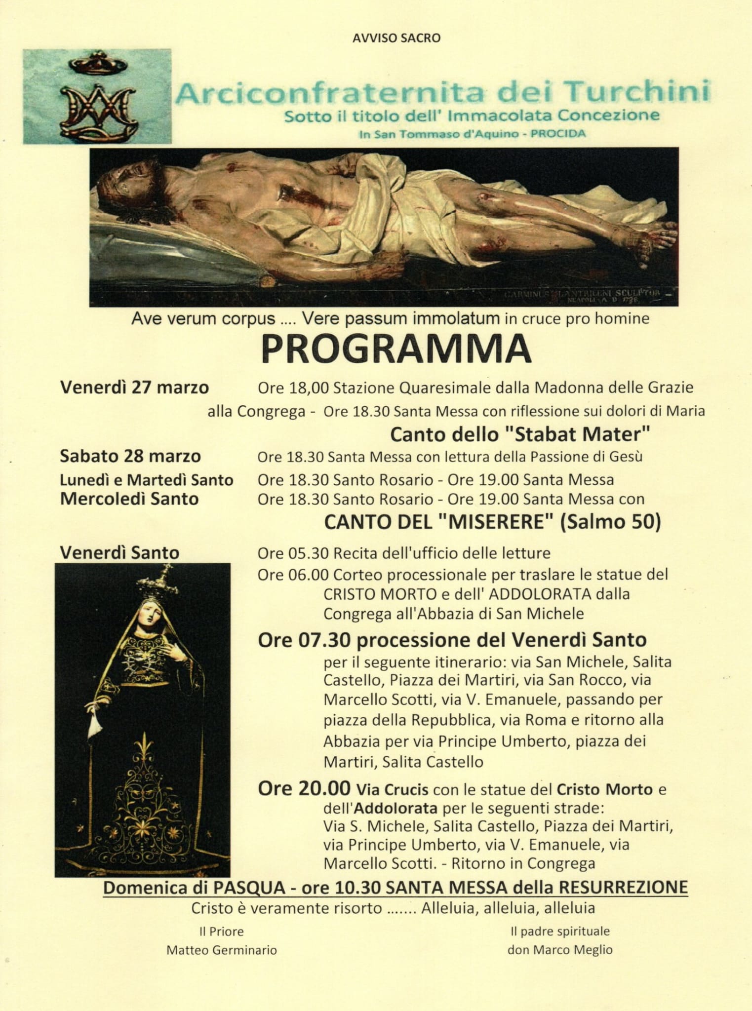 Procida –Tradizione, raccoglimento e preghiera scandiranno i giorni della Settimana Santa sull’isola, grazie all’Arciconfraternita dei Turchini.